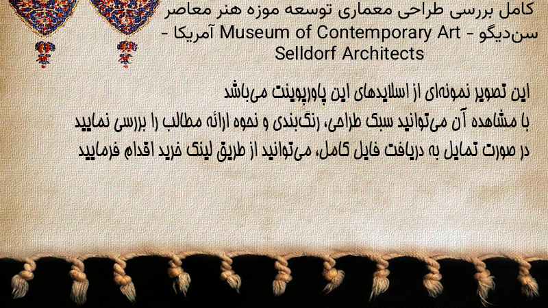 پاورپوینت کامل بررسی طراحی معماری توسعه موزه هنر معاصر سندیگو Museum of Contemporary Art – آمریکا – Selldorf Architects
