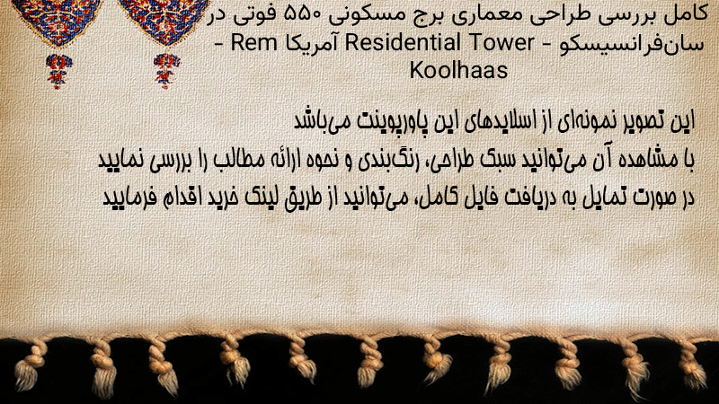 پاورپوینت کامل بررسی طراحی معماری برج مسکونی ۵۵۰ فوتی در سانفرانسیسکو Residential Tower – آمریکا – Rem Koolhaas