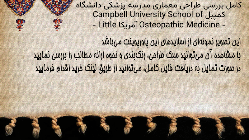 پاورپوینت کامل بررسی طراحی معماری مدرسه پزشکی دانشگاه کمپبل Campbell University School of Osteopathic Medicine – آمریکا – Little