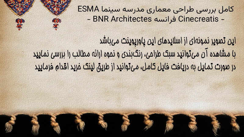 پاورپوینت کامل بررسی طراحی معماری مدرسه سینما ESMA Cinecreatis – فرانسه – BNR Architectes