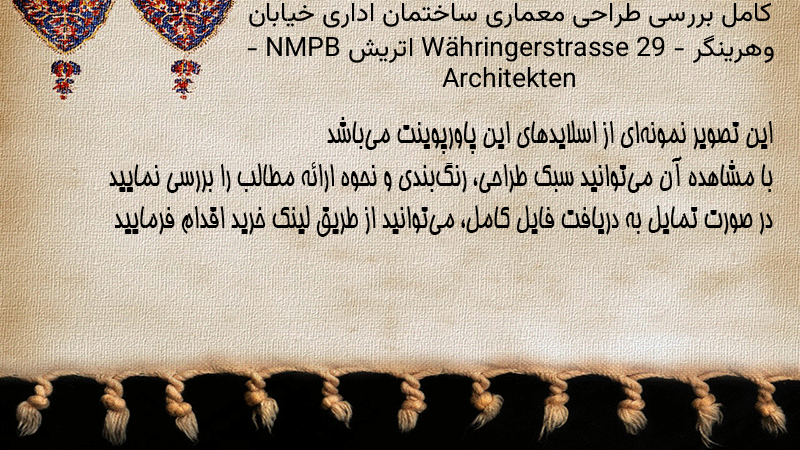 پاورپوینت کامل بررسی طراحی معماری ساختمان اداری خیابان وهرینگر Währingerstrasse 29 – اتریش – NMPB Architekten