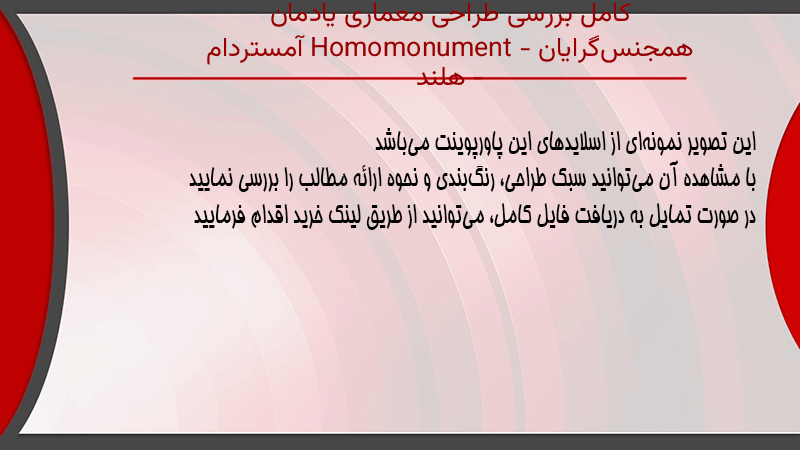 پاورپوینت کامل بررسی طراحی معماری یادمان همجنسگرایان Homomonument – آمستردام – هلند