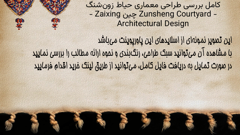 پاورپوینت کامل بررسی طراحی معماری حیاط زونشنگ Zunsheng Courtyard – چین – Zaixing Architectural Design