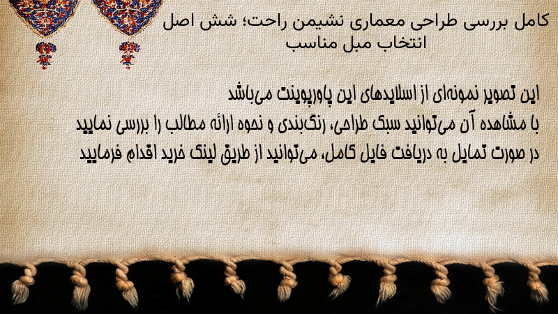 پاورپوینت کامل بررسی طراحی معماری نشیمن راحت؛ شش اصل انتخاب مبل مناسب