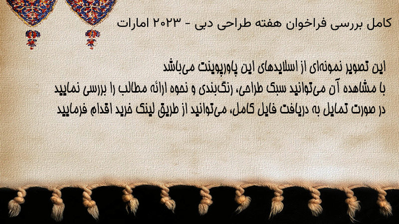 پاورپوینت کامل بررسی فراخوان هفته طراحی دبی ۲۰۲۳ – امارات