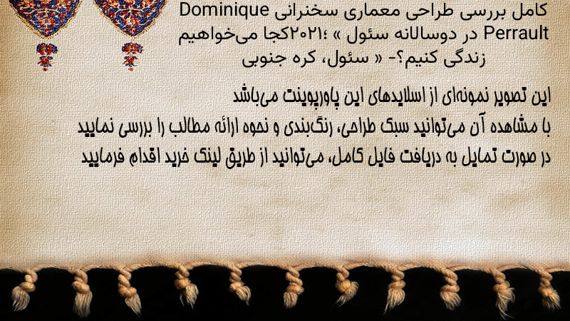پاورپوینت کامل بررسی طراحی معماری سخنرانی Dominique Perrault در دوسالانه سئول ۲۰۲۱؛ «کجا میخواهیم زندگی کنیم؟» – سئول، کره جنوبی