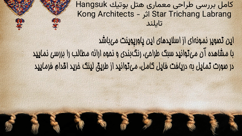 پاورپوینت کامل بررسی طراحی معماری هتل بوتیک Hangsuk Star Trichang Labrang اثر Kong Architects – تایلند