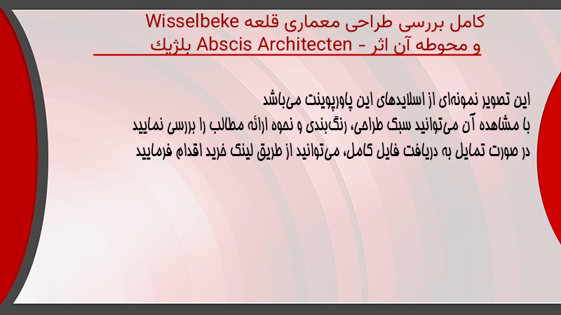 پاورپوینت کامل بررسی طراحی معماری قلعه Wisselbeke و محوطه آن اثر Abscis Architecten – بلژیک
