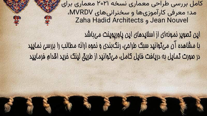 پاورپوینت کامل بررسی طراحی معماری نسخه ۲۰۲۱ معماری برای مد؛ معرفی کارآموزیها و سخنرانیهای MVRDV، Jean Nouvel و Zaha Hadid Architects