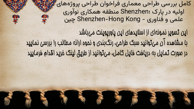 پاورپوینت کامل بررسی طراحی معماری فراخوان طراحی پروژههای اولیه در پارک Shenzhen؛ منطقه همکاری نوآوری علمی و فناوری Shenzhen-Hong Kong – چین