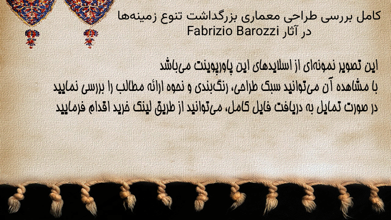 پاورپوینت کامل بررسی طراحی معماری بزرگداشت تنوع زمینهها در آثار Fabrizio Barozzi