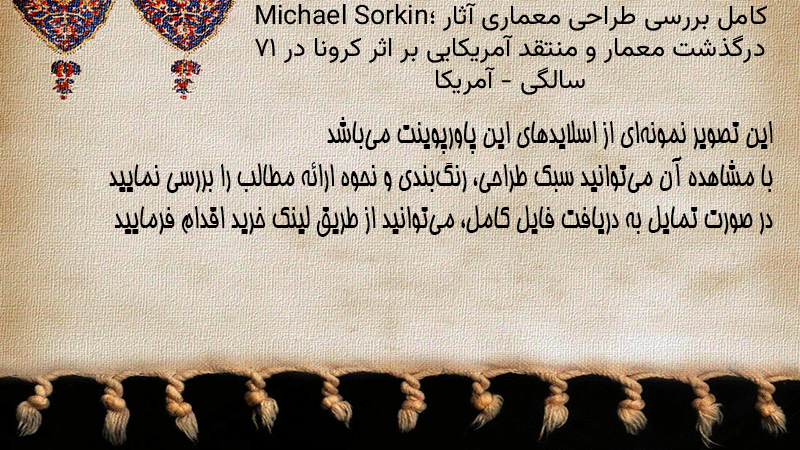 پاورپوینت کامل بررسی طراحی معماری آثار Michael Sorkin؛ درگذشت معمار و منتقد آمریکایی بر اثر کرونا در ۷۱ سالگی – آمریکا