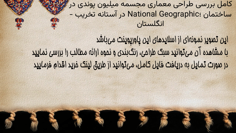 پاورپوینت کامل بررسی طراحی معماری مجسمه میلیون پوندی در ساختمان National Geographic؛ در آستانه تخریب – انگلستان