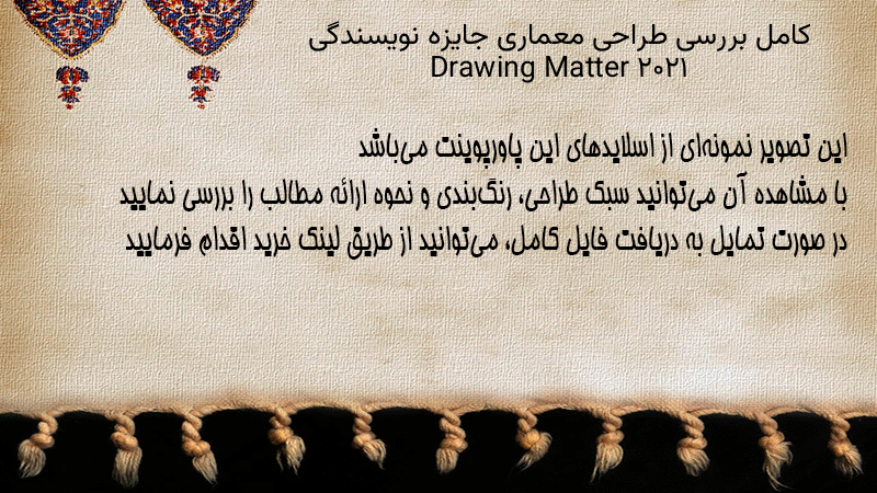 پاورپوینت کامل بررسی طراحی معماری جایزه نویسندگی Drawing Matter ۲۰۲۱