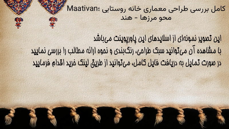 پاورپوینت کامل بررسی طراحی معماری خانه روستایی Maativan؛ محو مرزها – هند