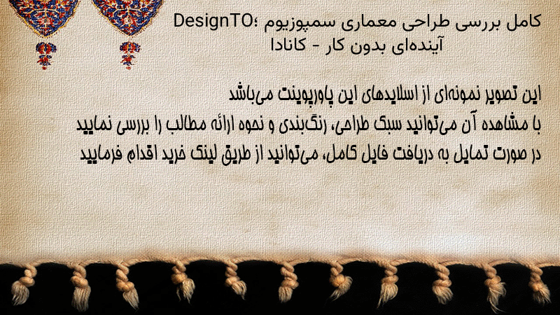 پاورپوینت کامل بررسی طراحی معماری سمپوزیوم DesignTO؛ آیندهای بدون کار – کانادا