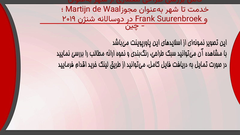 پاورپوینت کامل بررسی طراحی معماری از شهر بهعنوان خدمت تا شهر بهعنوان مجوز؛ Martijn de Waal و Frank Suurenbroek در دوسالانه شنژن ۲۰۱۹ – چین