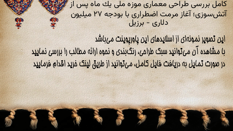 پاورپوینت کامل بررسی طراحی معماری موزه ملی یک ماه پس از آتشسوزی؛ آغاز مرمت اضطراری با بودجه ۲۷ میلیون دلاری – برزیل