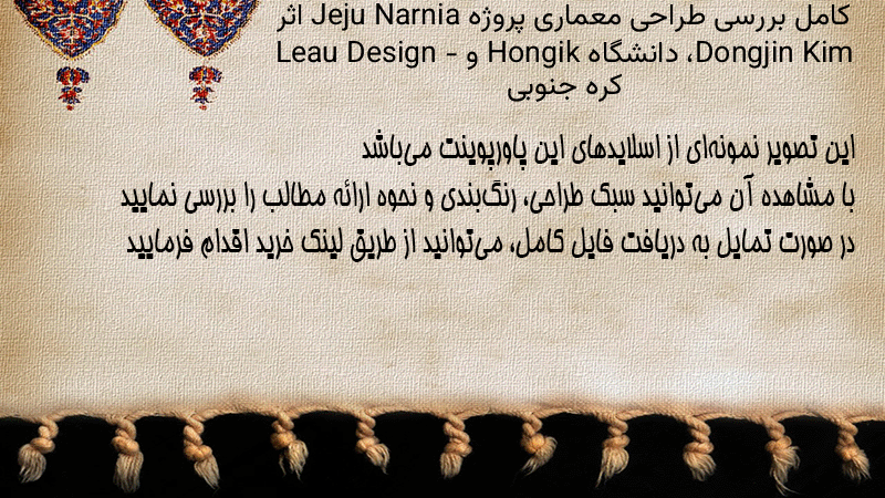 پاورپوینت کامل بررسی طراحی معماری پروژه Jeju Narnia اثر Dongjin Kim، دانشگاه Hongik و Leau Design – کره جنوبی