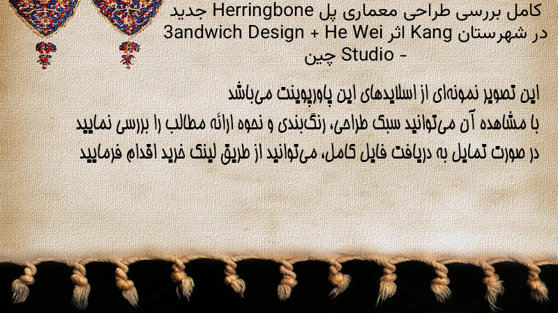 پاورپوینت کامل بررسی طراحی معماری پل Herringbone جدید در شهرستان Kang اثر ۳andwich Design + He Wei Studio – چین