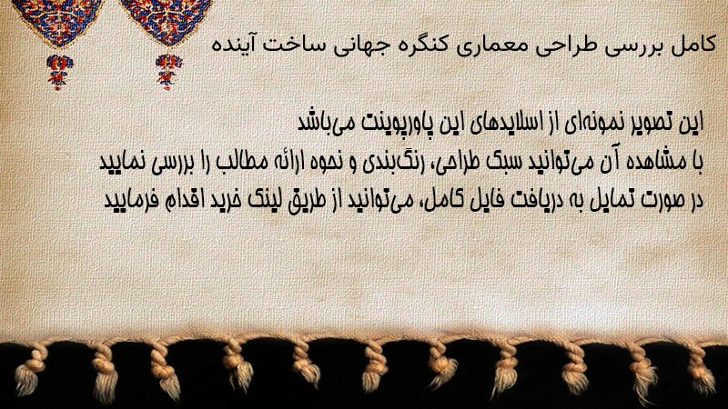 پاورپوینت کامل بررسی طراحی معماری کنگره جهانی ساخت آینده