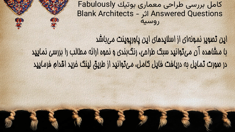 پاورپوینت کامل بررسی طراحی معماری بوتیک Fabulously Answered Questions اثر Blank Architects – روسیه