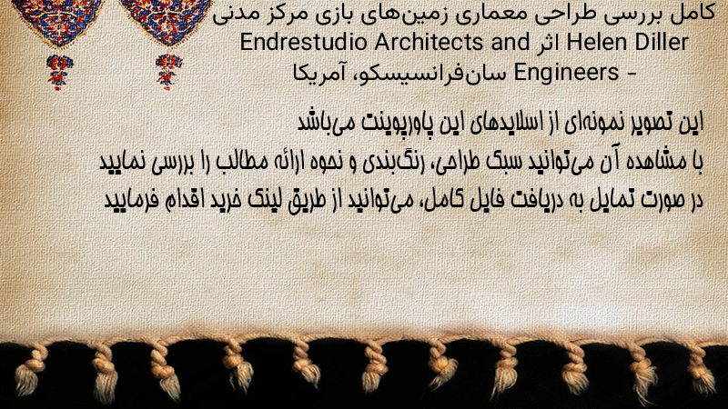 پاورپوینت کامل بررسی طراحی معماری زمینهای بازی مرکز مدنی Helen Diller اثر Endrestudio Architects and Engineers – سانفرانسیسکو، آمریکا