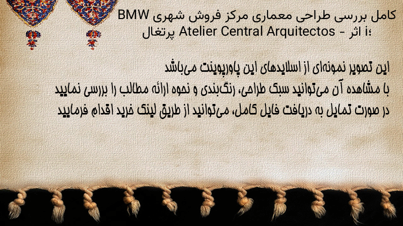 پاورپوینت کامل بررسی طراحی معماری مرکز فروش شهری BMW i؛ اثر Atelier Central Arquitectos – پرتغال
