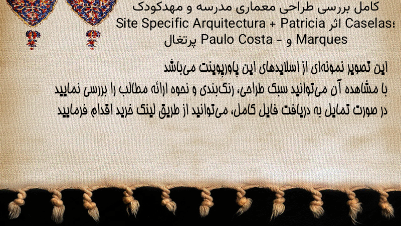 پاورپوینت کامل بررسی طراحی معماری مدرسه و مهدکودک Caselas؛ اثر Site Specific Arquitectura + Patricia Marques و Paulo Costa – پرتغال