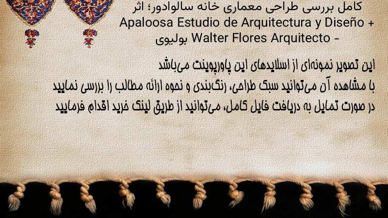 پاورپوینت کامل بررسی طراحی معماری خانه سالوادور؛ اثر Apaloosa Estudio de Arquitectura y Diseño + Walter Flores Arquitecto – بولیوی