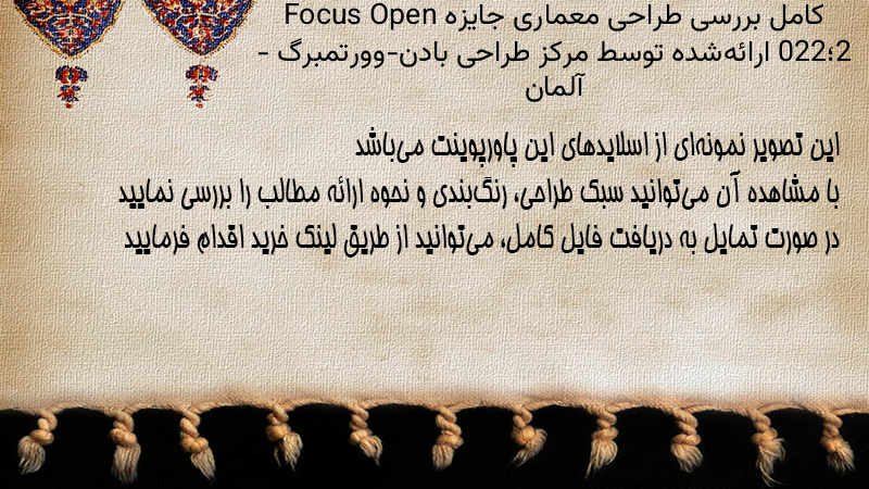 پاورپوینت کامل بررسی طراحی معماری جایزه Focus Open 2022؛ ارائهشده توسط مرکز طراحی بادن-وورتمبرگ – آلمان