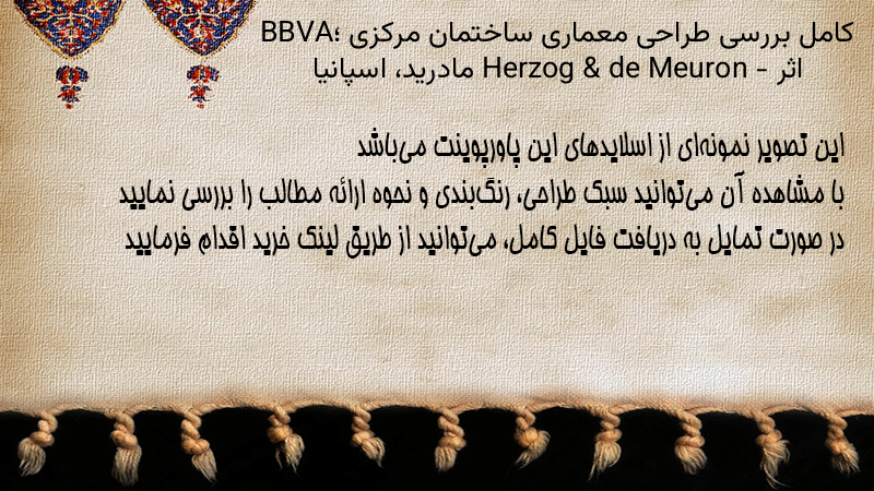 پاورپوینت کامل بررسی طراحی معماری ساختمان مرکزی BBVA؛ اثر Herzog & de Meuron – مادرید، اسپانیا