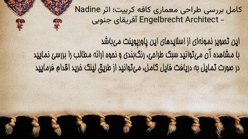 پاورپوینت کامل بررسی طراحی معماری کافه کرییت؛ اثر Nadine Engelbrecht Architect – آفریقای جنوبی
