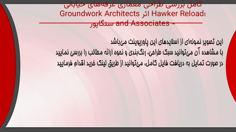 پاورپوینت کامل بررسی طراحی معماری غرفههای خیابانی Hawker Reload؛ اثر Groundwork Architects and Associates – سنگاپور