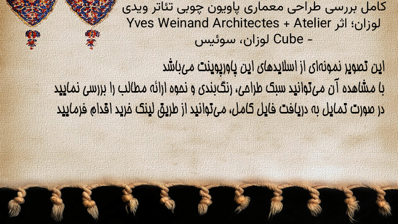 پاورپوینت کامل بررسی طراحی معماری پاویون چوبی تئاتر ویدی لوزان؛ اثر Yves Weinand Architectes + Atelier Cube – لوزان، سوئیس