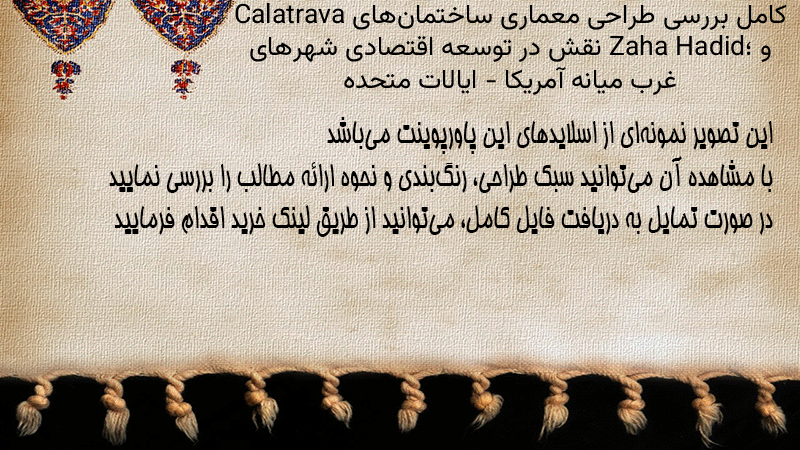 پاورپوینت کامل بررسی طراحی معماری ساختمانهای Calatrava و Zaha Hadid؛ نقش در توسعه اقتصادی شهرهای غرب میانه آمریکا – ایالات متحده