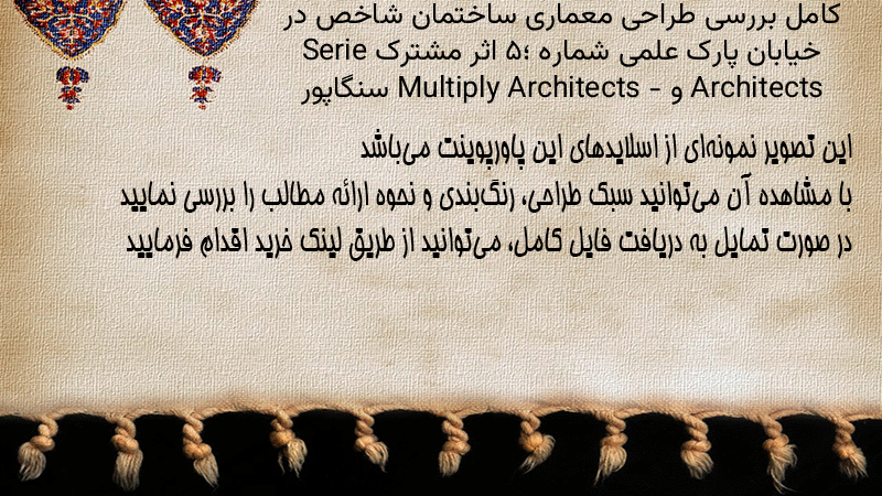 پاورپوینت کامل بررسی طراحی معماری ساختمان شاخص در خیابان پارک علمی شماره ۵؛ اثر مشترک Serie Architects و Multiply Architects – سنگاپور