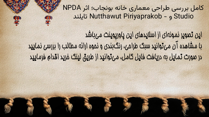 پاورپوینت کامل بررسی طراحی معماری خانه بونجاب؛ اثر NPDA Studio و Nutthawut Piriyaprakob – تایلند