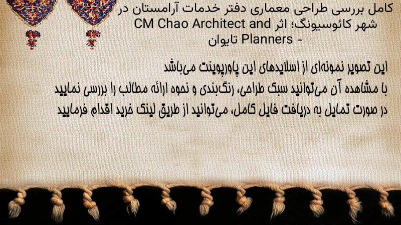 پاورپوینت کامل بررسی طراحی معماری دفتر خدمات آرامستان در شهر کائوسیونگ؛ اثر CM Chao Architect and Planners – تایوان