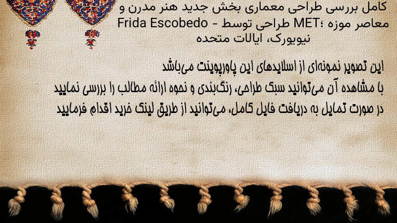 پاورپوینت کامل بررسی طراحی معماری بخش جدید هنر مدرن و معاصر موزه MET؛ طراحی توسط Frida Escobedo – نیویورک، ایالات متحده