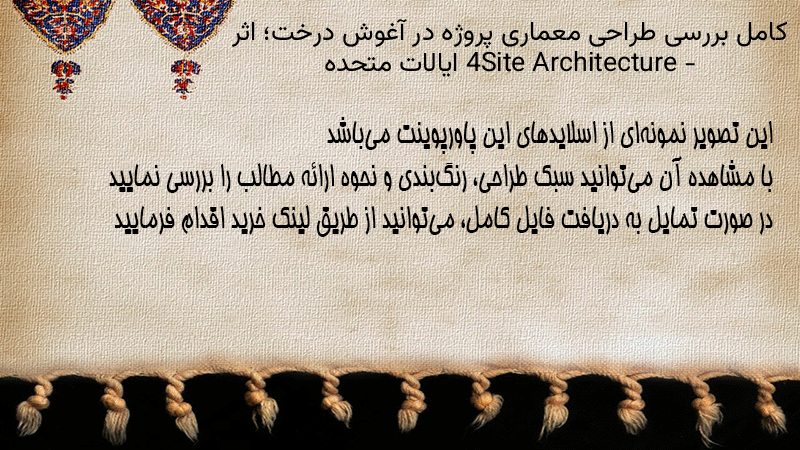 پاورپوینت کامل بررسی طراحی معماری پروژه در آغوش درخت؛ اثر ۴Site Architecture – ایالات متحده