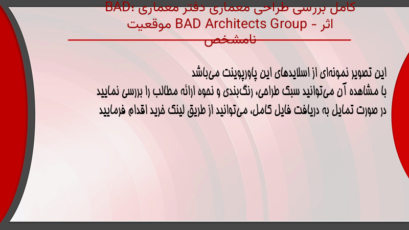 پاورپوینت کامل بررسی طراحی معماری دفتر معماری BAD؛ اثر BAD Architects Group – موقعیت نامشخص