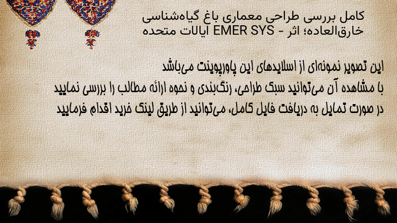 پاورپوینت کامل بررسی طراحی معماری باغ گیاهشناسی خارقالعاده؛ اثر EMER SYS – ایالات متحده