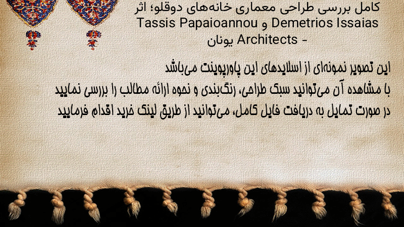 پاورپوینت کامل بررسی طراحی معماری خانههای دوقلو؛ اثر Demetrios Issaias و Tassis Papaioannou Architects – یونان