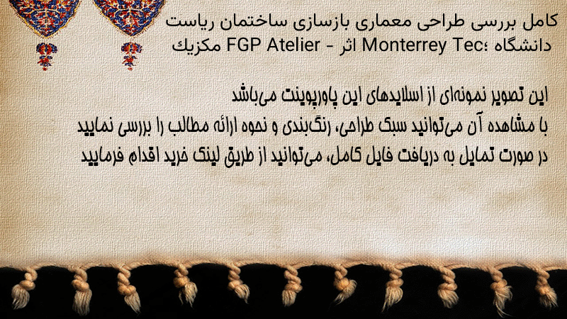 پاورپوینت کامل بررسی طراحی معماری بازسازی ساختمان ریاست دانشگاه Monterrey Tec؛ اثر FGP Atelier – مکزیک