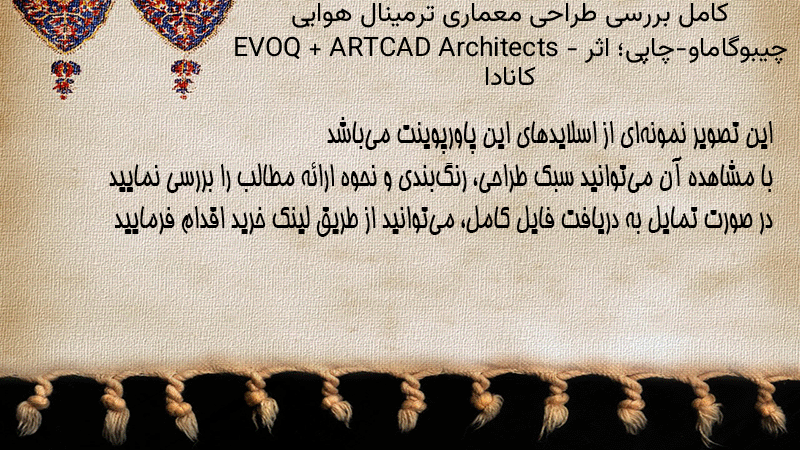 پاورپوینت کامل بررسی طراحی معماری ترمینال هوایی چیبوگاماو-چاپِی؛ اثر EVOQ + ARTCAD Architects – کانادا