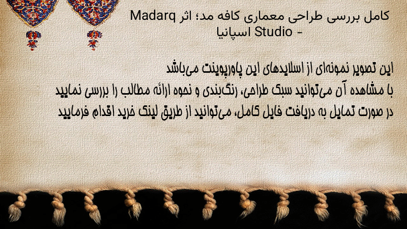 پاورپوینت کامل بررسی طراحی معماری کافه مد؛ اثر Madarq Studio – اسپانیا