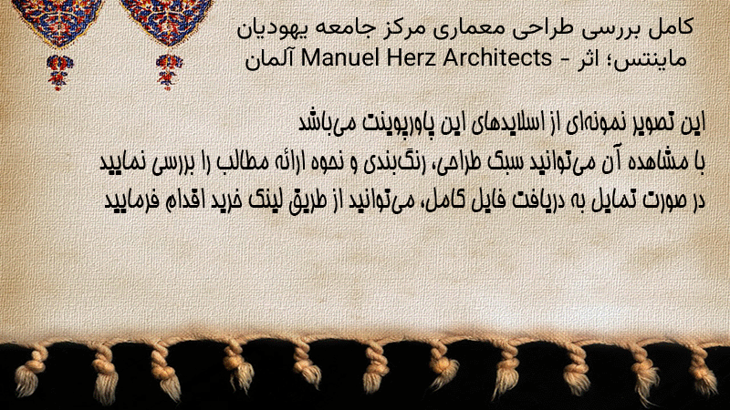 پاورپوینت کامل بررسی طراحی معماری مرکز جامعه یهودیان ماینتس؛ اثر Manuel Herz Architects – آلمان