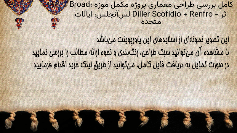 پاورپوینت کامل بررسی طراحی معماری پروژه مکمل موزه Broad؛ اثر Diller Scofidio + Renfro – لسآنجلس، ایالات متحده