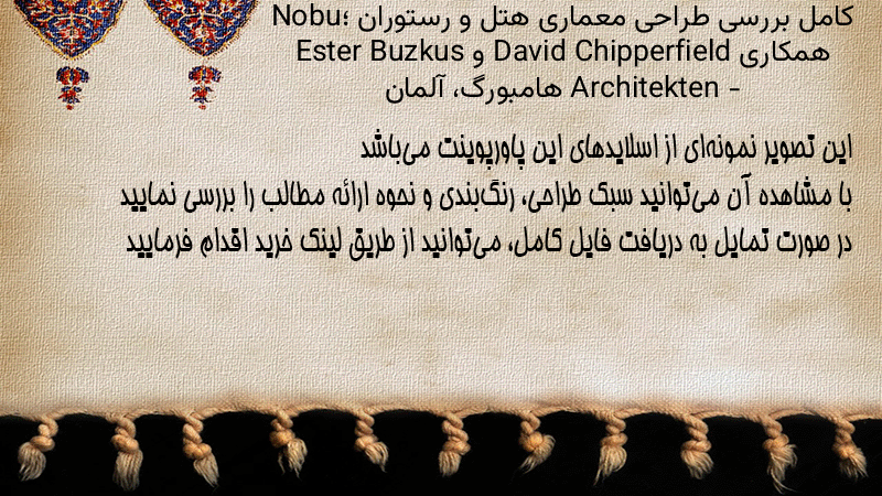 پاورپوینت کامل بررسی طراحی معماری هتل و رستوران Nobu؛ همکاری David Chipperfield و Ester Buzkus Architekten – هامبورگ، آلمان